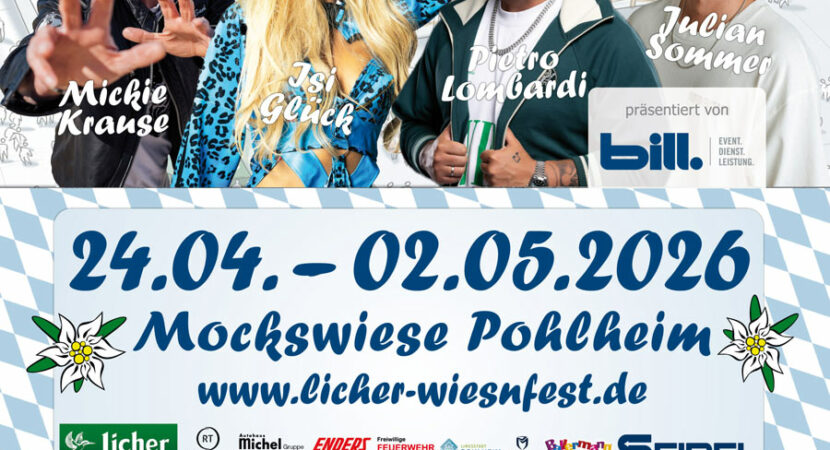 Endlich! Der Vorverkauf für das erste Wiesnfest des Jahres 2026 startet. Raus aus dem Alltag, rein in die Tracht. Das ist das Motto, wenn es auf der Mockswiese in Pohlheim zum bereits 16. Mal heißt: o’zapft is! In der Zeit…
