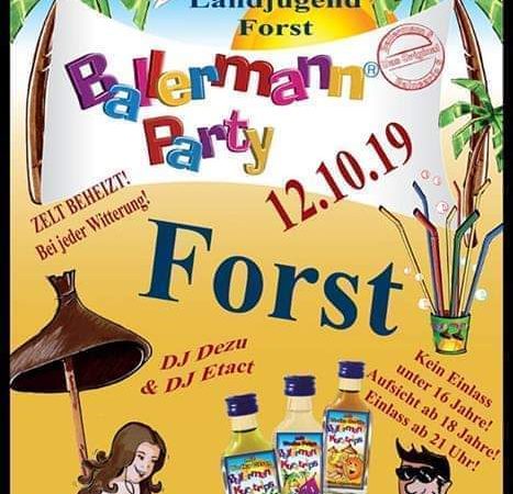 Boid is wieder soweit: am 12.10.2019 steigt die legendäre Ballermann Party in Forst. Es sorgen wieder DJ Dezu & DJ Etact für die perfekte Stimmung! Mehr Infos: https://www.facebook.com/events/522707531870766/ Sangriatime von 23:00 - 0:00 Uhr Im beheizten Zelt bei JEDER WITTERUNG Kein…