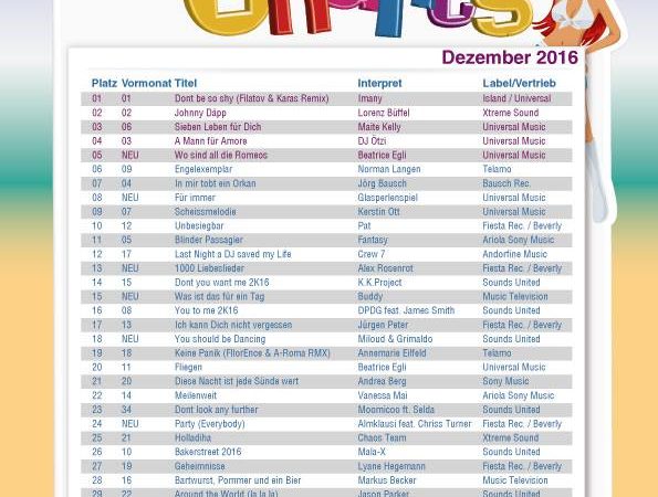 Die ersten Kerzen brennen - die tolle Weihnachtszeit hat begonnen! Und damit auch der letzte Monat in einem turbulenten Jahr 2016. Hier sind nun also die off. BALLERMANN CHARTS Ausgabe Dezember 2016 mit einigen Newcomern aber auch interessanten Einsteigern (IN ist,…